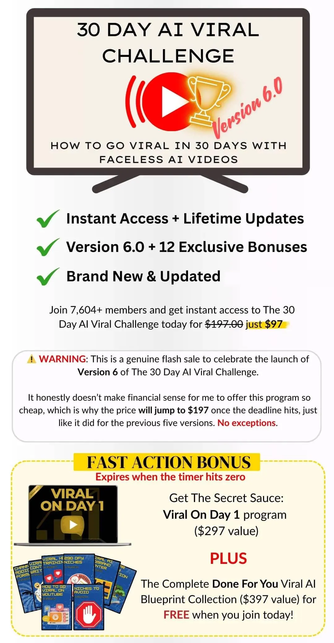 All information, training, and education provided by The 30 Day AI Viral Challenge is for educational and informational purposes only. We make no guarantees of income or specific results. Success in any business requires hard work, consistency, and action, and results will vary. Please ensure you are 18 years or older to purchase and participate in our programs.